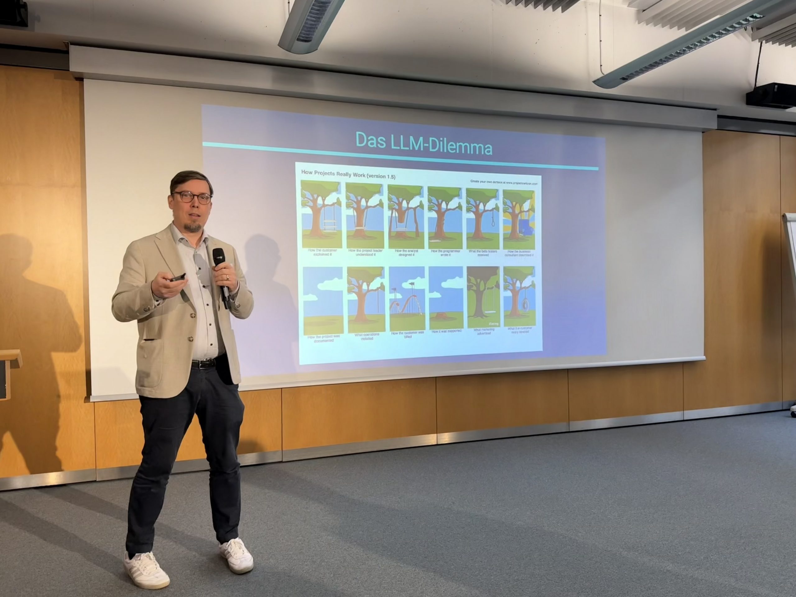 Dauenhauer zeigte, was bei KI-Agenten Stand der Dinge ist und wo Versprechen von Zeitgewinn bis Jobersatz in der Praxis an Grenzen stoßen. Seine Botschaft: Arbeitsabläufe neu denken und Technik sauber integrieren – das macht eine Technologie für Unternehmen erfolgreich. Viele Betriebe zögern noch beim Einsatz von KI-Agenten, weil unklar ist, wie sich die Systeme verlässlich in bestehende Prozesse einbinden lassen.